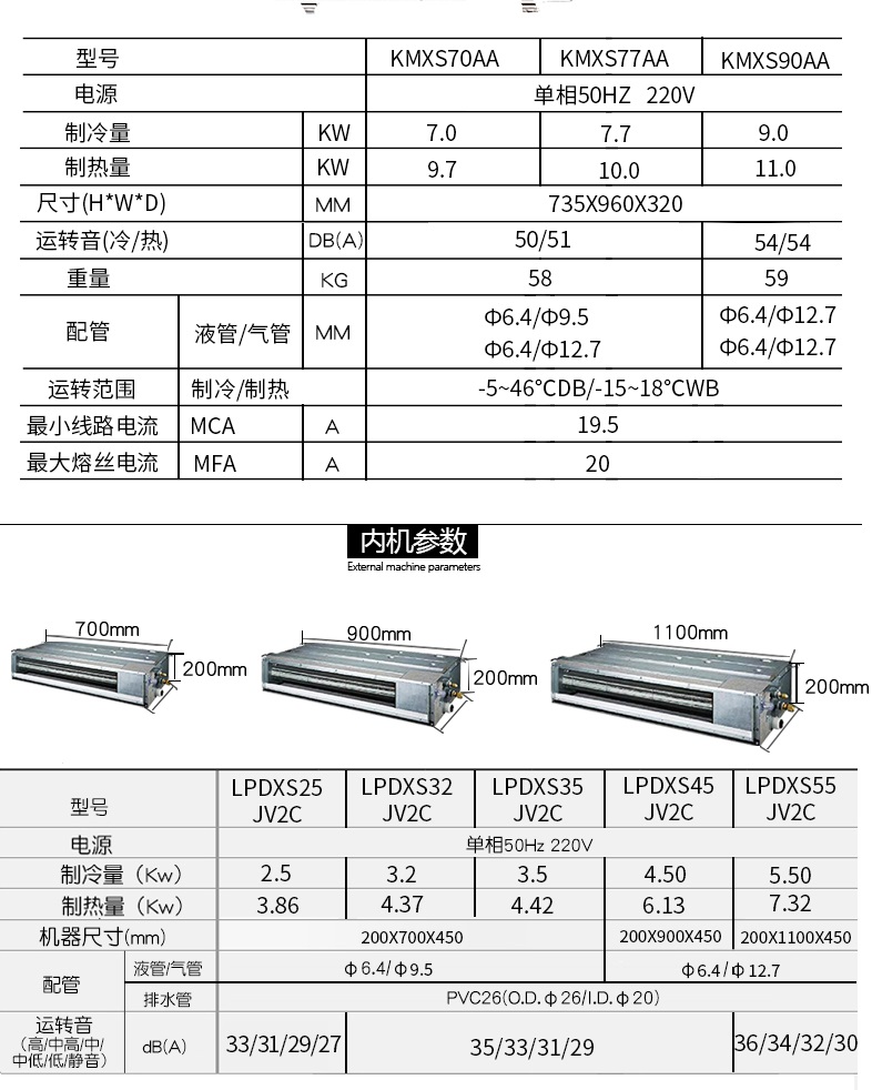 ● 室內機可選擇風管式室內機或掛壁式室內機