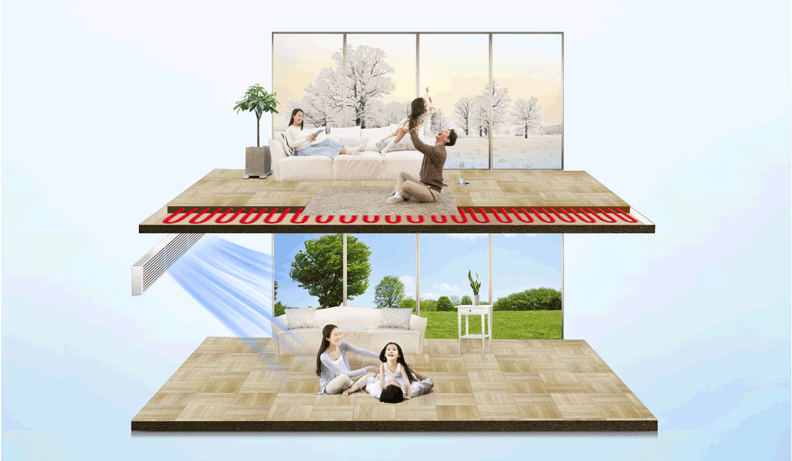 全變頻(靜音 節能 長壽):變頻渦旋壓縮機+變頻驅動器,變頻水泵,電子膨脹閥,比傳統采暖節能50%
